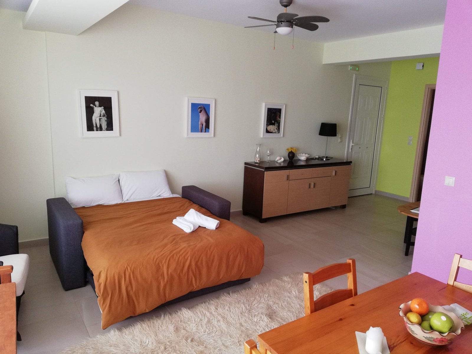 POSEIDON Apartement with one bedroom, a fully equiped kitchen, one living room, one bathroom, a private courtyard and view of the Corinthian
